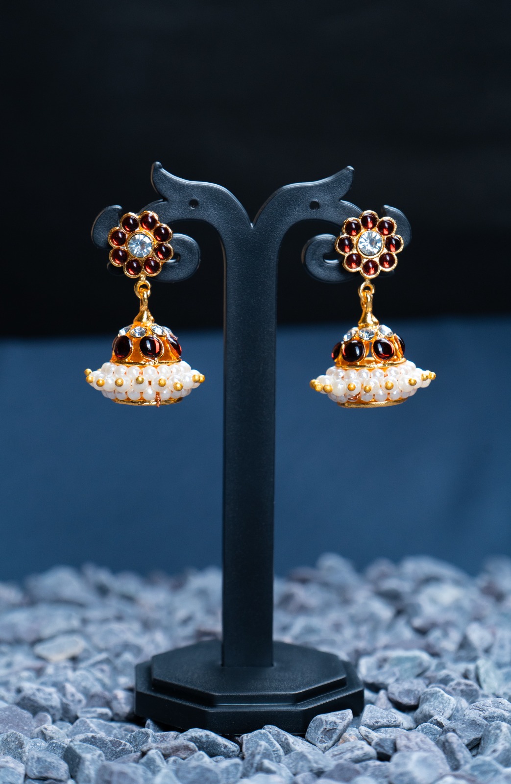 Be the first to review “Bharatanatyam Kemp and White Stone Jhumka Earrings”